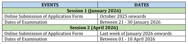 JEE Main 2026: Key Dates